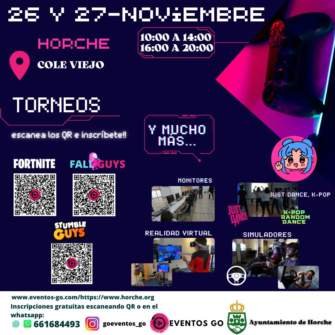 Los próximos sábado 26 y domingo 27 de noviembre de 10 a 14 y de 16 a 20 horas, el Colegio Viejo acogerá unas jornadas con torneos de Fortnite, Stumble Guys y Fall Guys, monitores, simuladores, Just Dance, K-Pop Random Dance y realidad virtual.