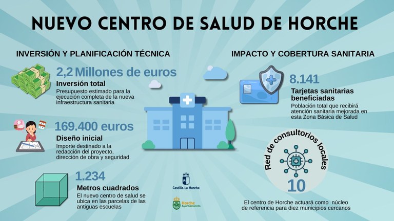El Gobierno de Castilla-La Mancha ha adjudicado el contrato para la redacción del proyecto básico y de ejecución, dirección facultativa y coordinación de seguridad y salud de las obras de construcción del nuevo Centro de Salud de Horche, por un importe de 169.400 euros.