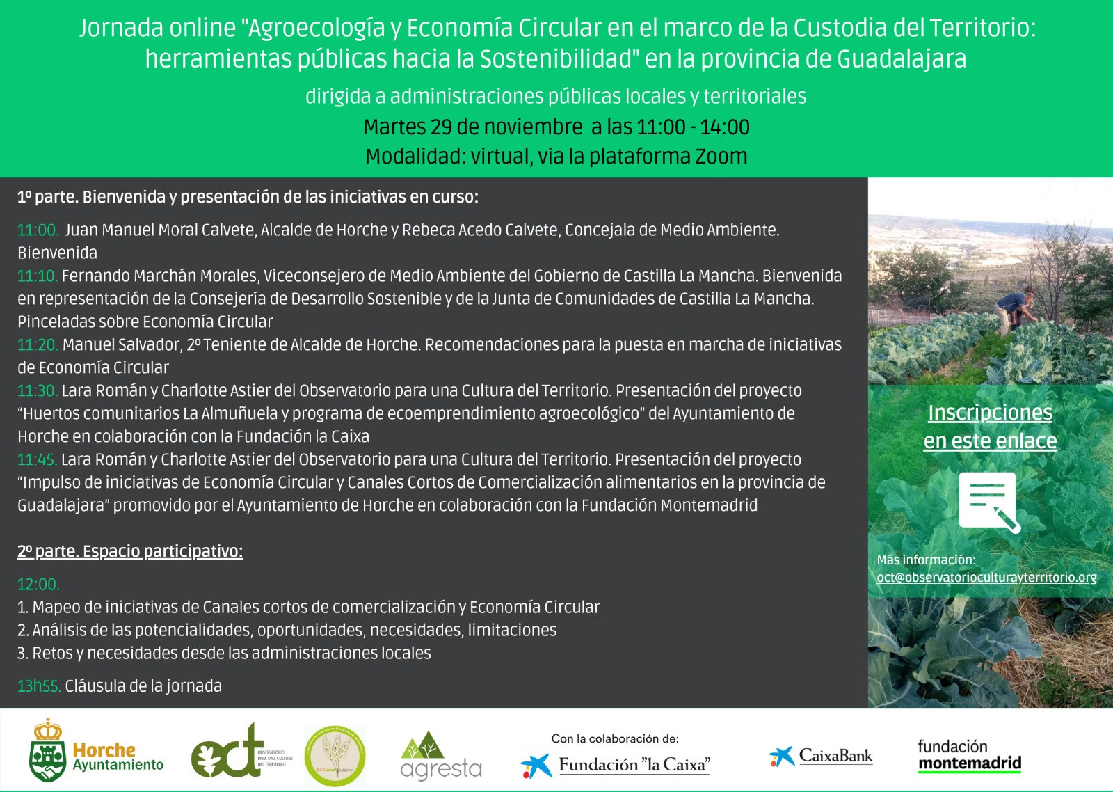 - Jornada Online Agroecología y Economía Circular en el marco de la Custodia del Territorio: herramientas públicas hacia la Sostenibilidad