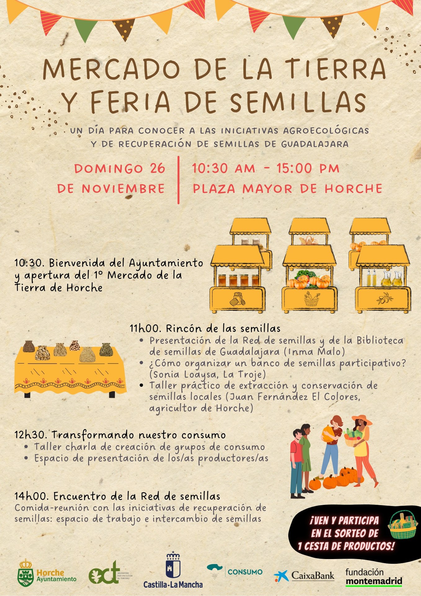 10:30 h. Bienvenida del Ayuntamiento y apertura del 1º Mercado de la Tierra de Horche.