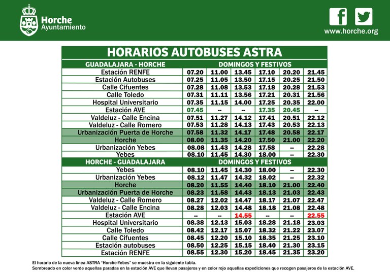 Este lunes día 2 de agosto se pone en marcha el nuevo servicio de transporte de autobuses de Horche, que ha entrado a formar parte del Área Supramunicipal de Transportes de Guadalajara (ASTRA) tras el nuevo convenio firmado con la Consejería de Fomento de la Junta de Comunidades de Castilla-La Mancha, que tiene una vigencia de dos años prorrogables por otros dos más y que fue aprobado por el pleno horchano el pasado mes de abril.