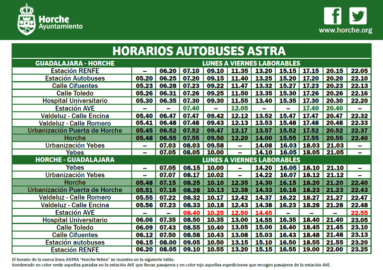 En total, el Ayuntamiento de Horche aportará 52.189,07 euros anuales para un servicio que abarcará un total de 165.764 kilómetros al año y que supondrá que los viajes entre Horche y Guadalajara aumenten un 43% de lunes a viernes, un 75% los sábados laborables y otro 50% los domingos y festivos.