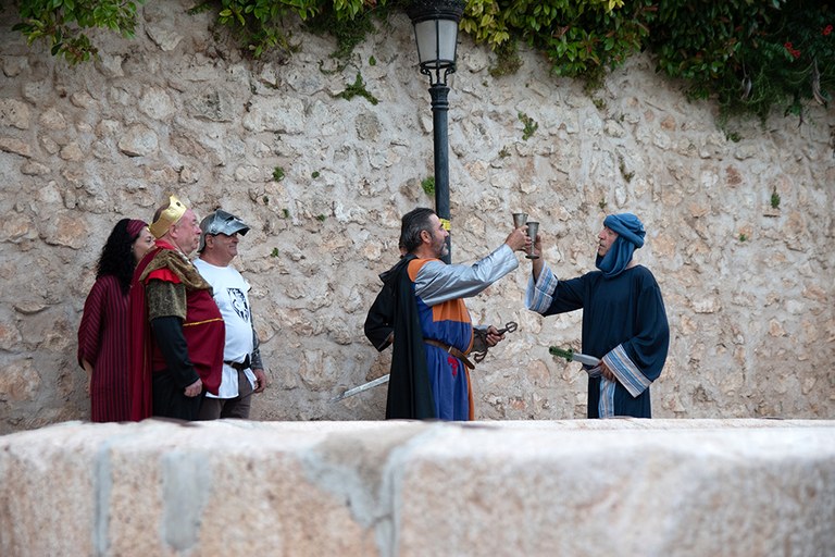 Por la tarde tenía lugar el principal acto de este festival con la representación teatralizada de ‘Reconquista Álvar Fáñez’, organizada por la Asociación Cultural Juan Talamanco y en la que han participado buena parte de los vecinos. A su término, y ya con la caída de la noche, tenía lugar el tradicional espectáculo de fuego y antorchas junto con el sorteo de regalos y de unas cestas con productos artesanos donadas por los mercaderes del festival.