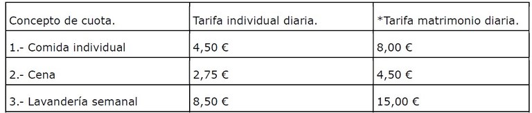 * Para la aplicación de la tarifa más reducida, será necesario que el matrimonio disponga de una única pensión, de lo contrario se aplicará a cada uno de los cónyuges la tarifa individual diaria.