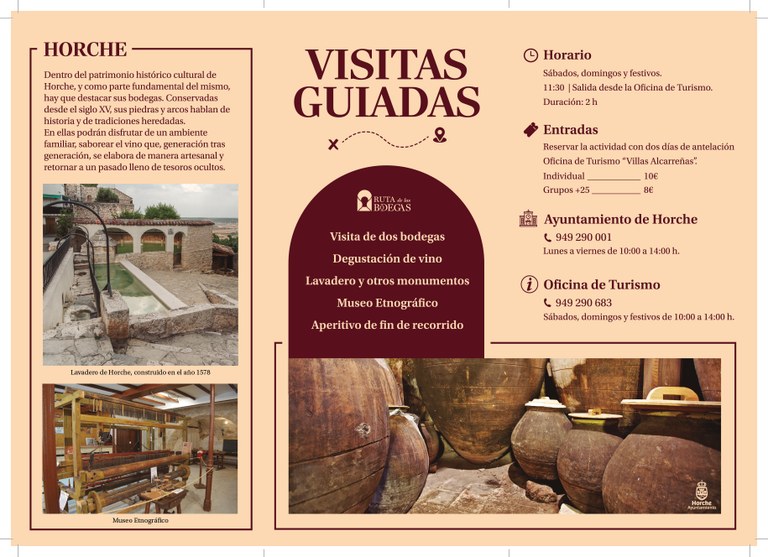 Se recomienda reservar la actividad con una antelación mínima de dos días. SÁBADOS Y DOMINGOS - Oficina de Turismo: DE LUNES A VIERNES - Ayuntamiento de Horche. Plaza Mayor, 1 Tlfno: 949 29 00 01 |